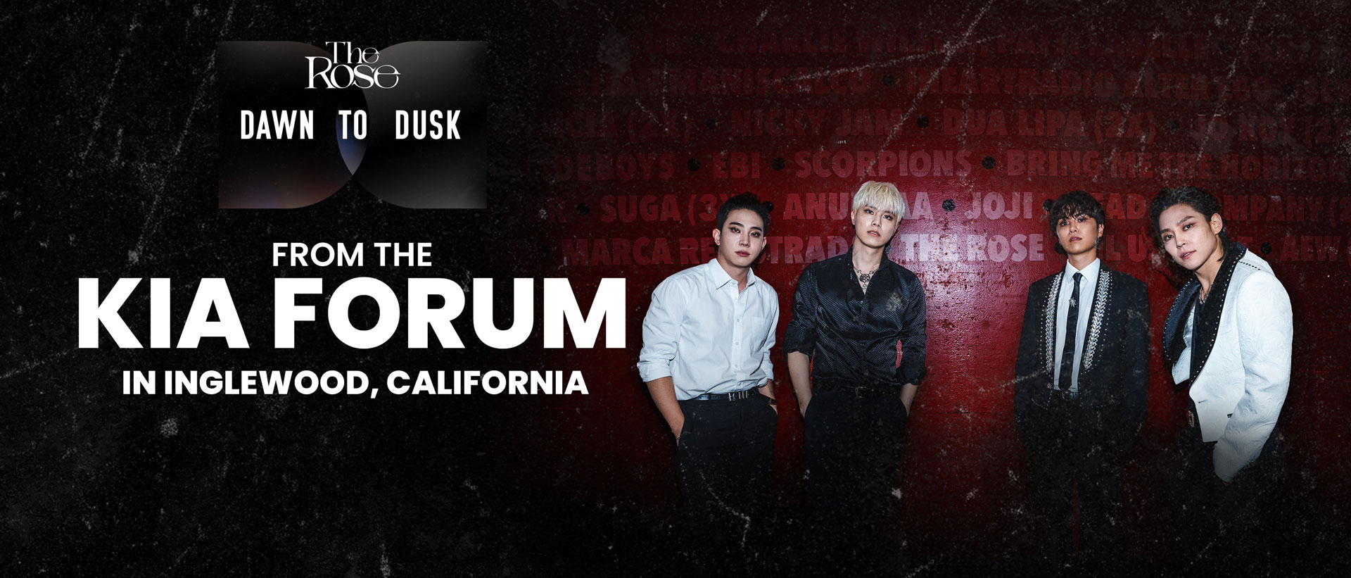 “‘The Dawn to Dusk’ Tour was the realization of a dream we always wanted to achieve. Doing bigger venues with thoughtful production was what we thought our Black Roses deserved,” said Kim Woo-sung, Park Do-joon, Lee Ha-joon, Lee Jae-hyeong, band members of The Rose. “It was a risk, but after the end of this first leg, the love and support we've felt from everyone lets us know we made the right decision. We are thankful that we also found a way to record the final show in Los Angeles, where we had our biggest crowd and some additional accents, so we can share Dawn to Dusk with the rest of the world.”